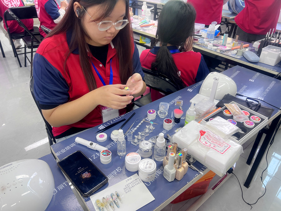 沒基礎(chǔ)學(xué)美甲學(xué)員正在進行美甲作品制作